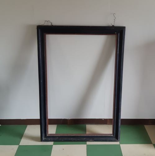古い鏡の枠です。 鏡はすでに外して、枠だけです。 サイズは外寸:73㎝×102㎝、内寸:61㎝×92㎝。 大きくて重い上に鏡面の汚れがひどく、倒れて鏡が割れると危ないので、処分する予定でした。 そのまま置いておくと、古い鏡に異界の何かが映り込みそうで、怖…